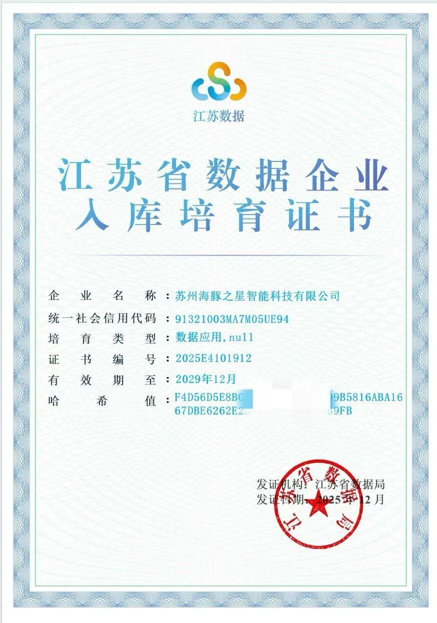 近日,省数据局公布江苏省首批入库培育数据企业名单,公海jcjc5500凭借在数据领域的技术实力与业务创新,成功入选。